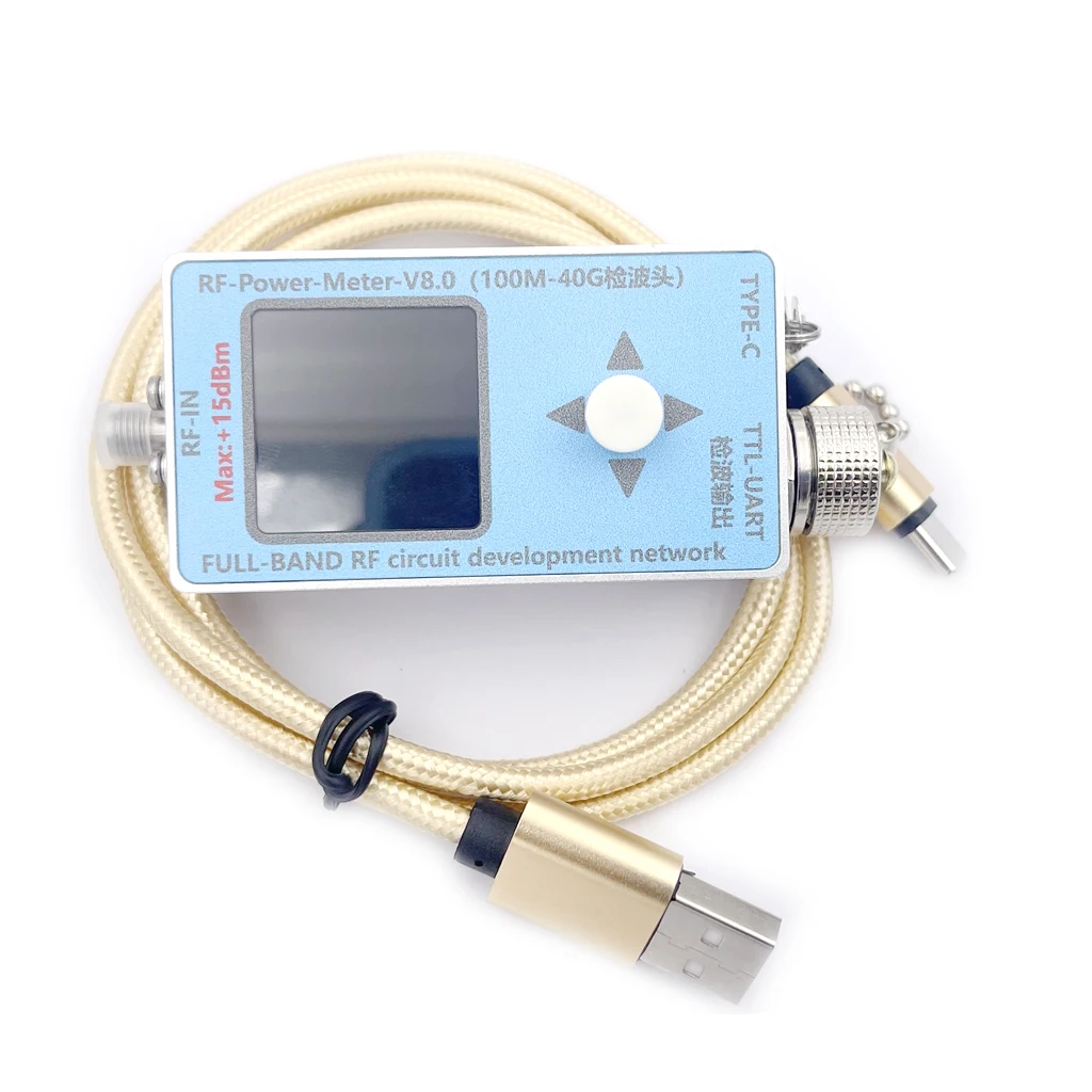 The RF-Power-Meter V8.0 series is a high performance and low cost portable TYPE-C simple RF Power Meter. TYPE-C provides 5V power supply and high-speed data communication. Simple to use, small size, easy to carry, stable performance, high accuracy, preset bias, wide dynamic range, fast measurement speed. The software accompanying the power meter enables users to configure the power meter on the PC side and make data recording and sharing easy.