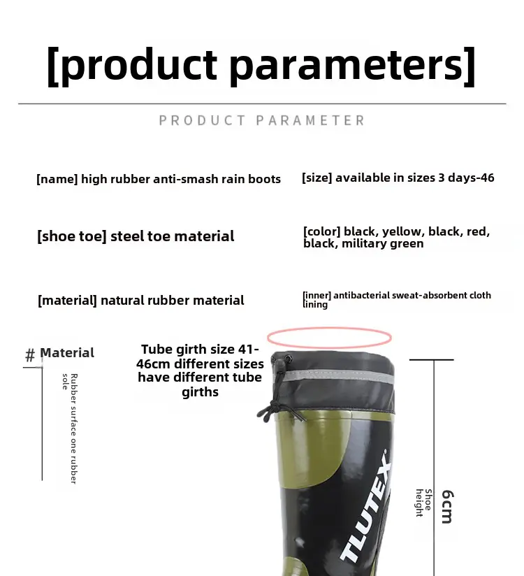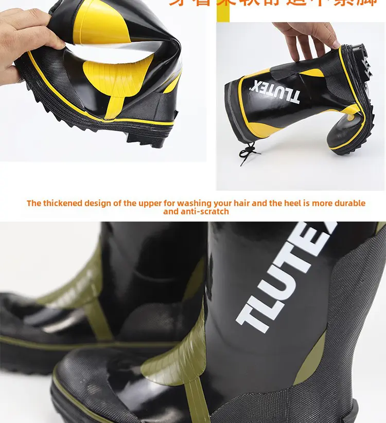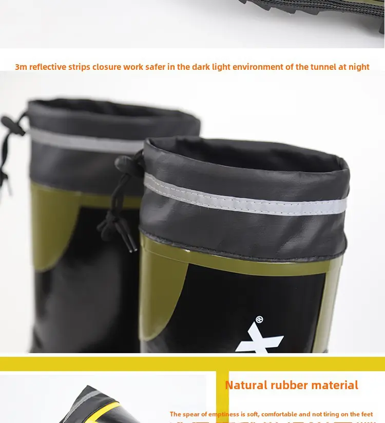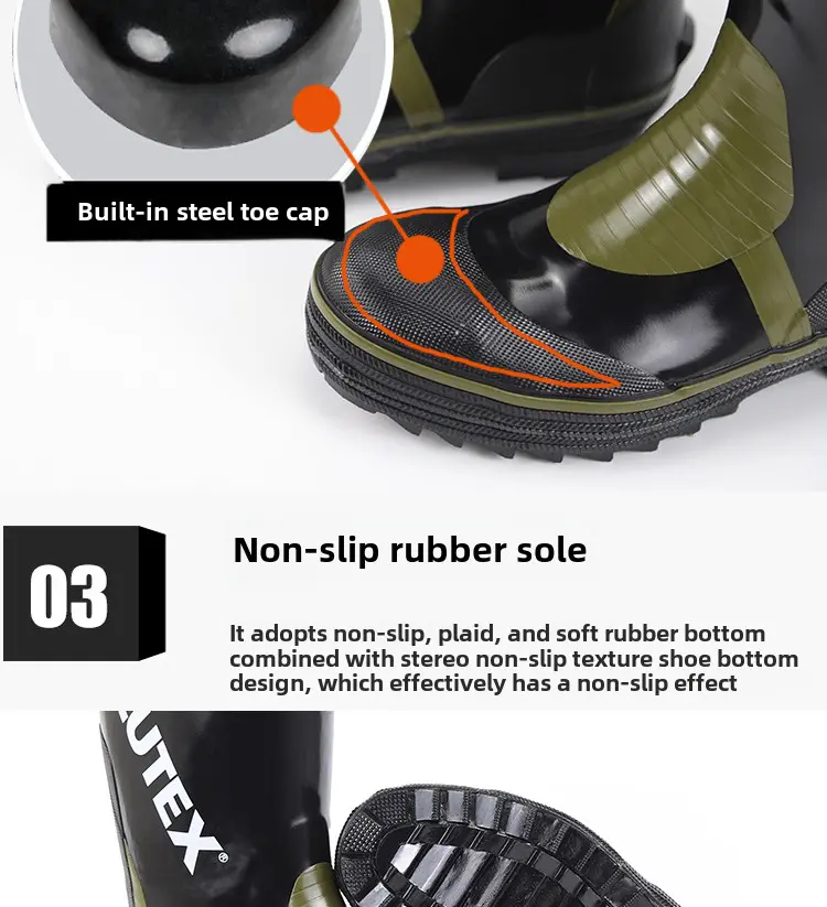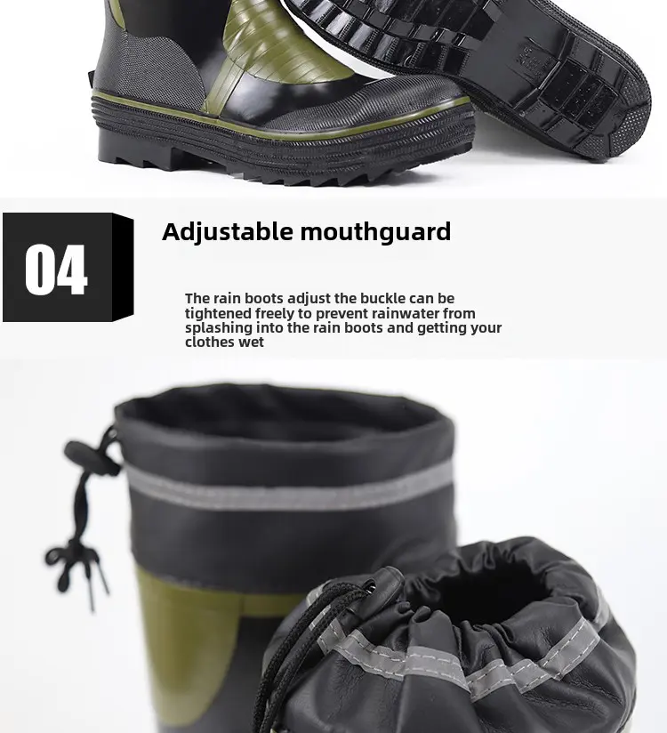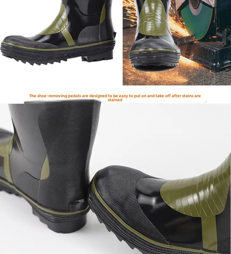 Crafted with waterproof rubber, these boots keep your feet dry in wet conditions, ideal for rainy days or water-related work environments.