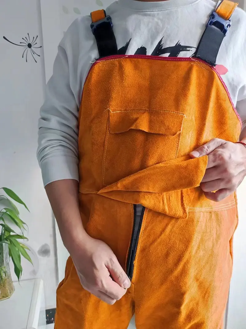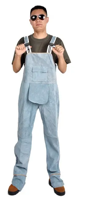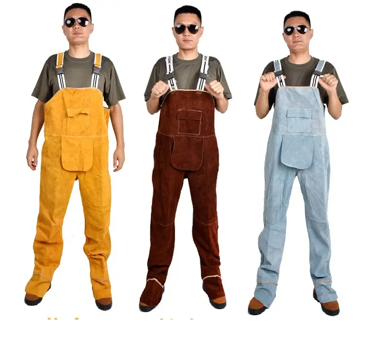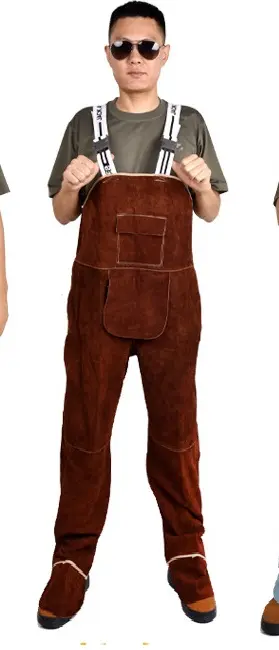 Welding Clothing Men’s Overall Safety Coverall High Temperature Protective Leather Flame Retardant Repairman Welder Strap Pants
