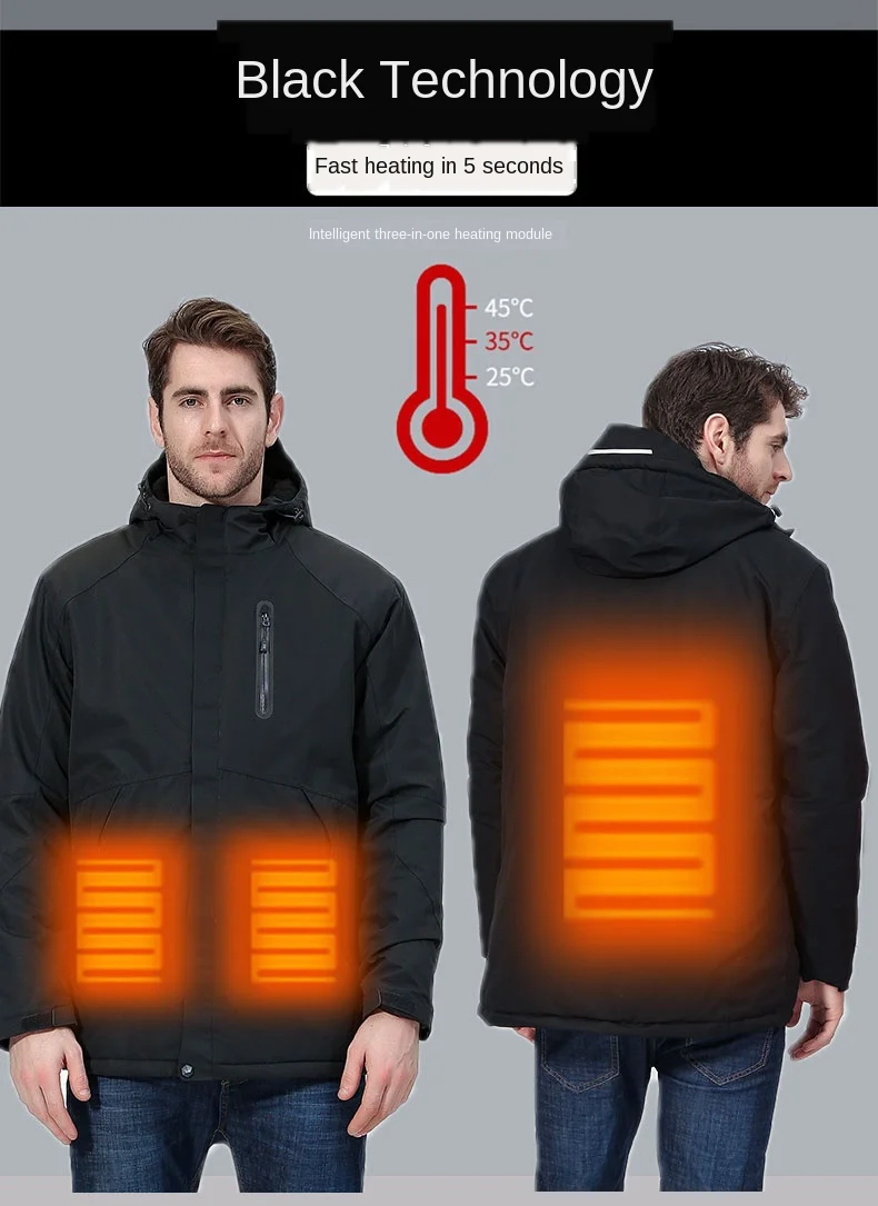 Winter Heated Jacket Men Women 2025 New USB Waterproof Electric Heating Warm Clothes Outdoor Jacket Mountain Wear Camping Coats