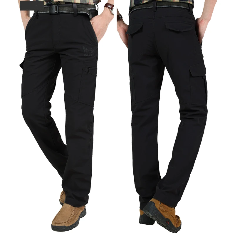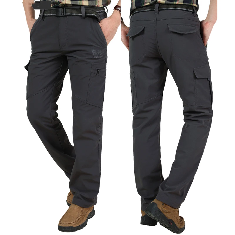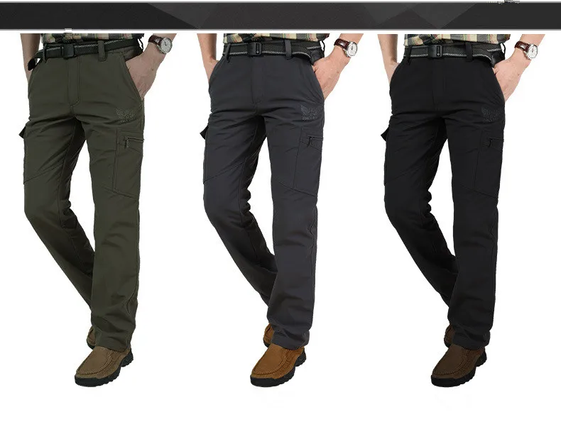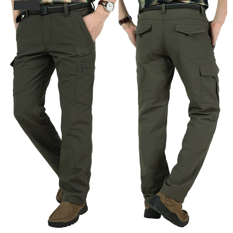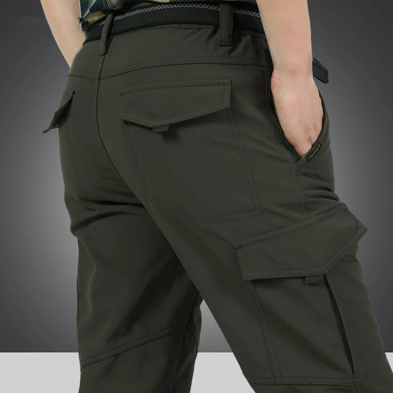 Winter Thick Fleece Warm Stretch Causal Pants Men Military SoftShell Waterproof Thermal Warm Cargo Pants Tactical Long Trousers