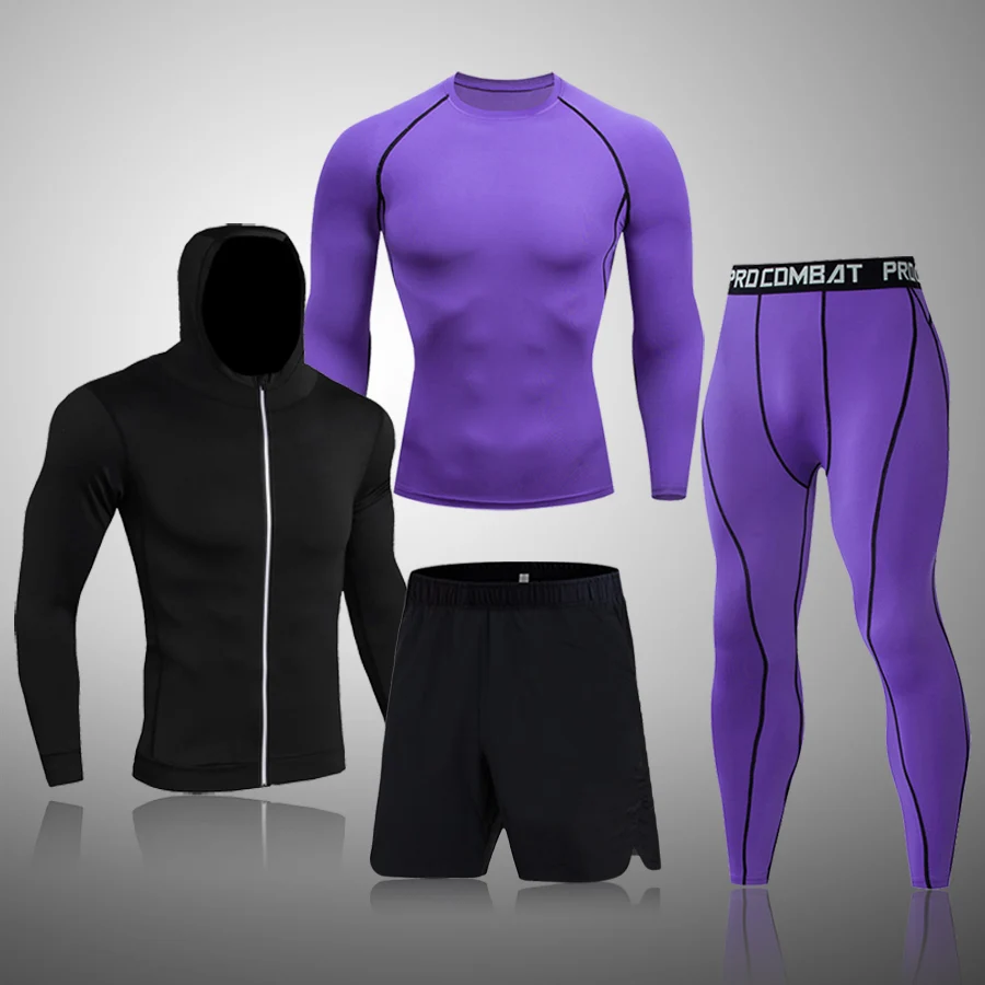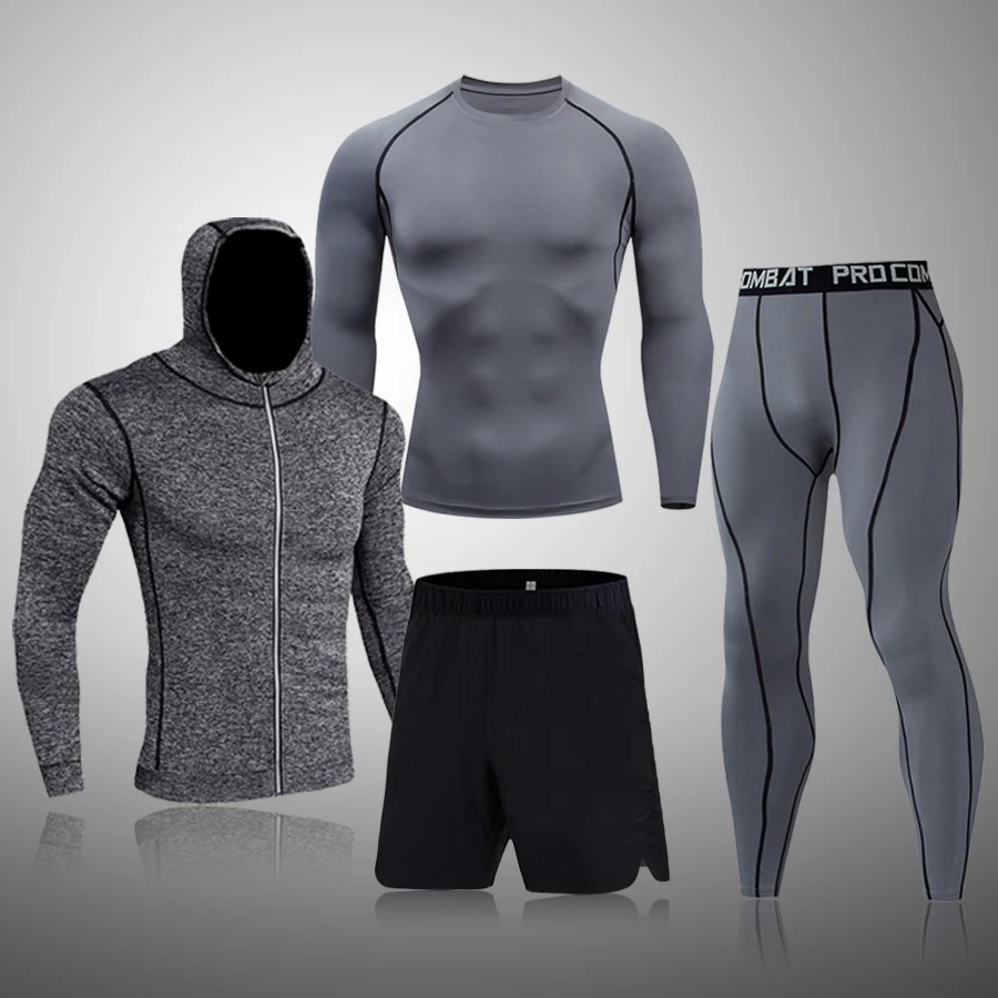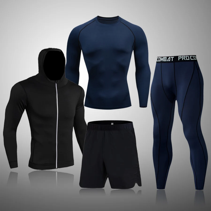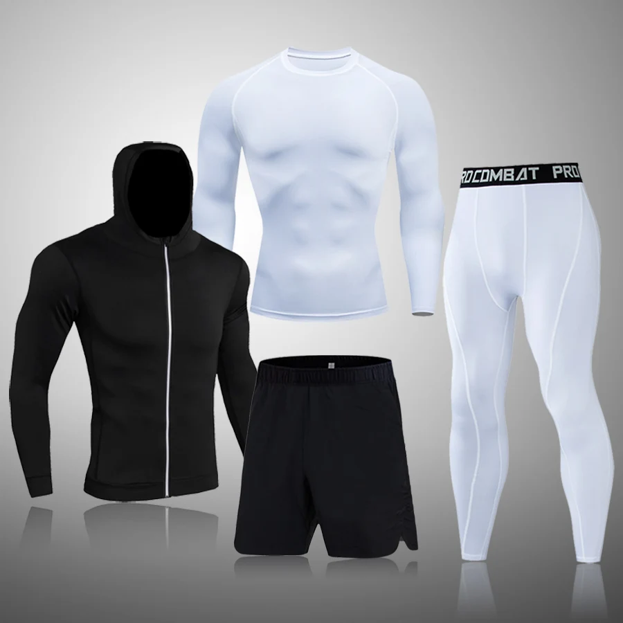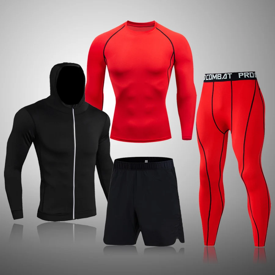Men’s Sports Apparel Compression Shirts & Pants Set made using Four needles and six lines technology