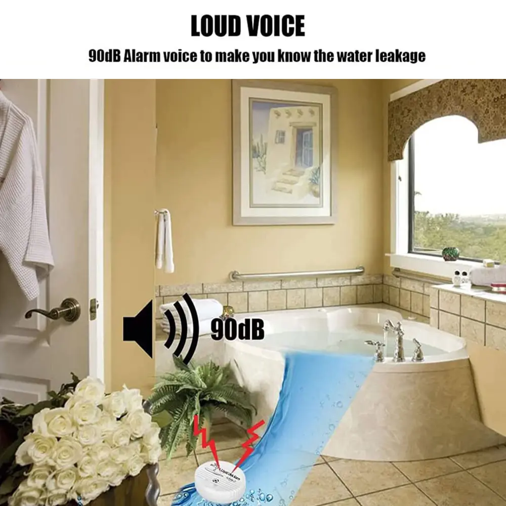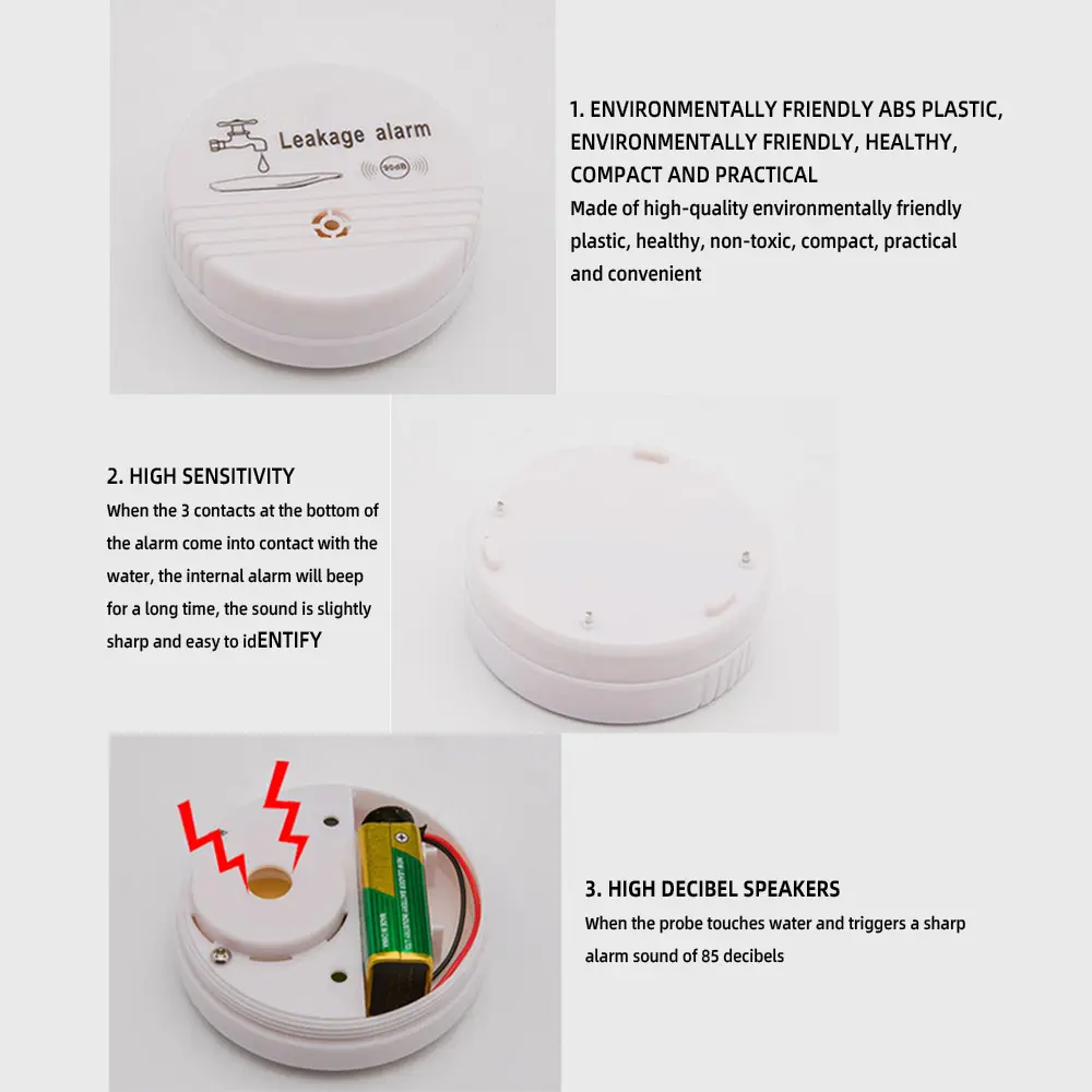 When the three contacts at the bottom of the alarm come into contact with water, the internal alarm can emit a long beep, with a slightly sharp sound that is easy to recognize