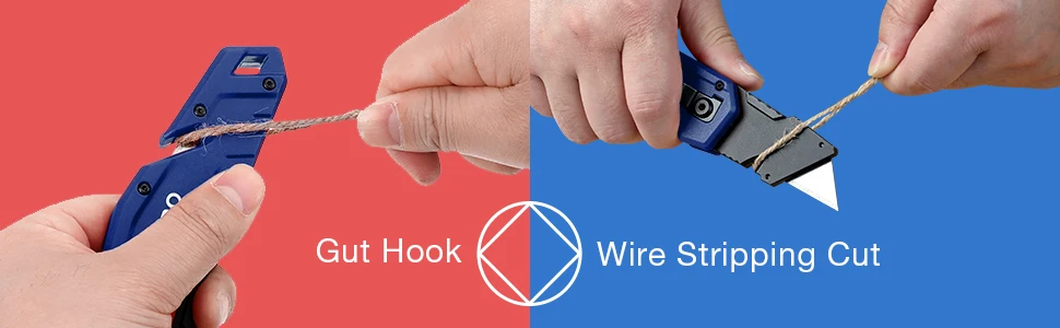 *Wire Stripping- The back of the knife is designed with a hooking knife edge, when you close the knife, you can use it to strip the wire and cut the rope