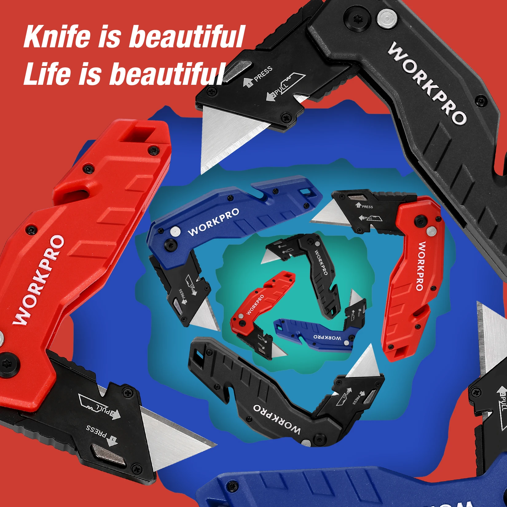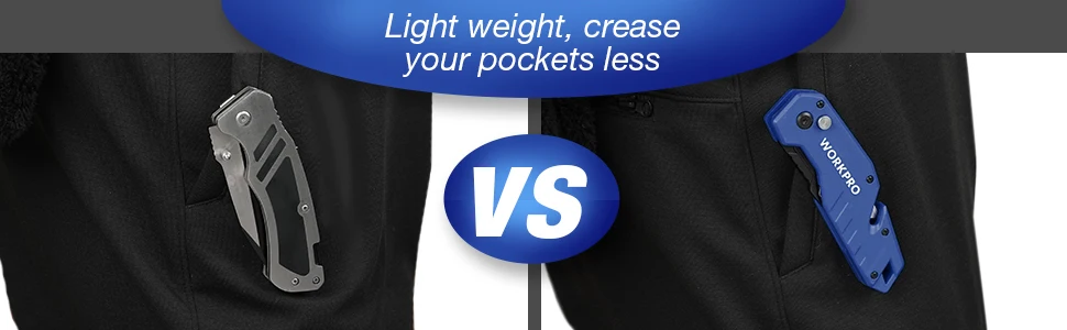*Utility Knife Dimensions – Overall Length: 7-3/32 inch; Folded Length: 4-3/4 inch; Weight: 4oz. The handle is made of nylon so this knife is very light. Extra 10 replaceable SK5 high carbon steel blades and blade dispenser included. The knife can work with all standard utility knife blades.