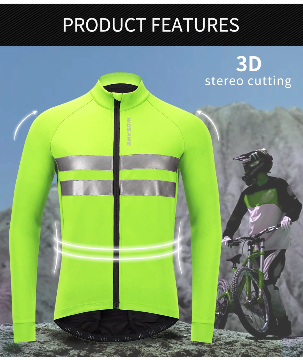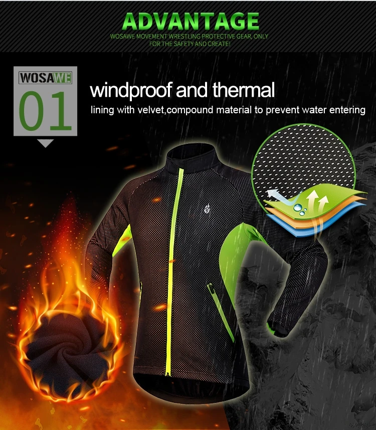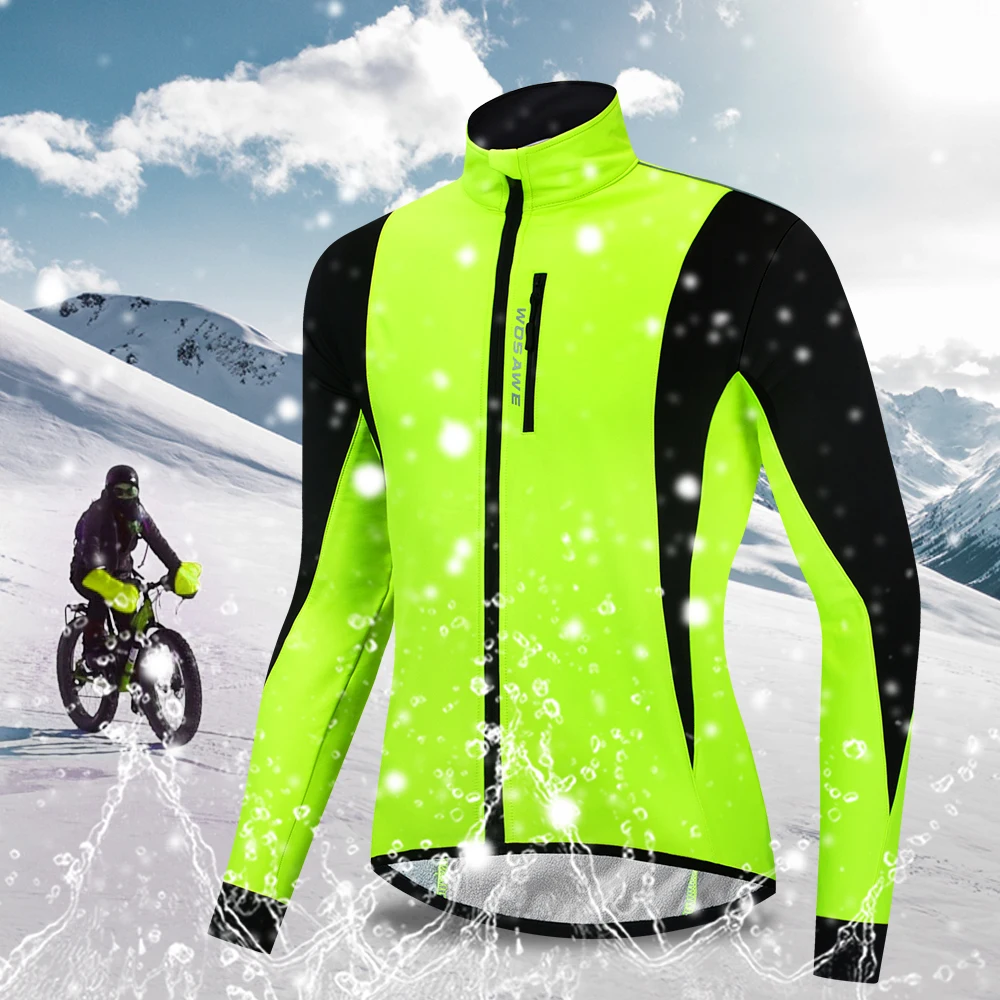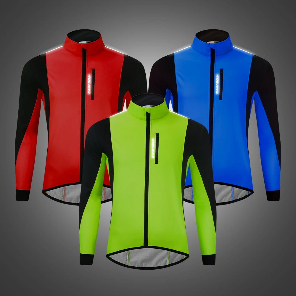 WOSAWE Men's Winter Warm Up Thermal Fleece Cycling Jacket Bicycle MTB Road Bike Clothing Windproof Water Repellent Long jacket