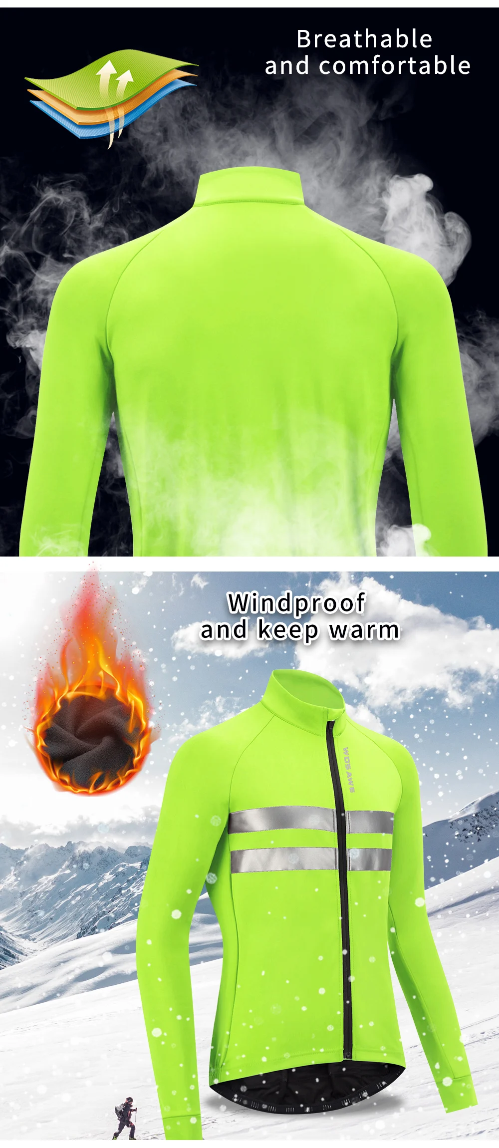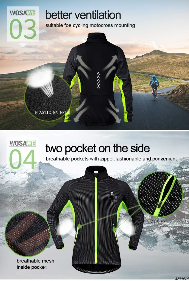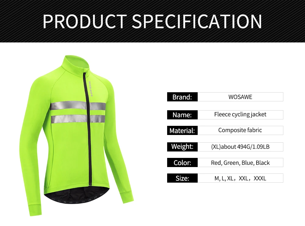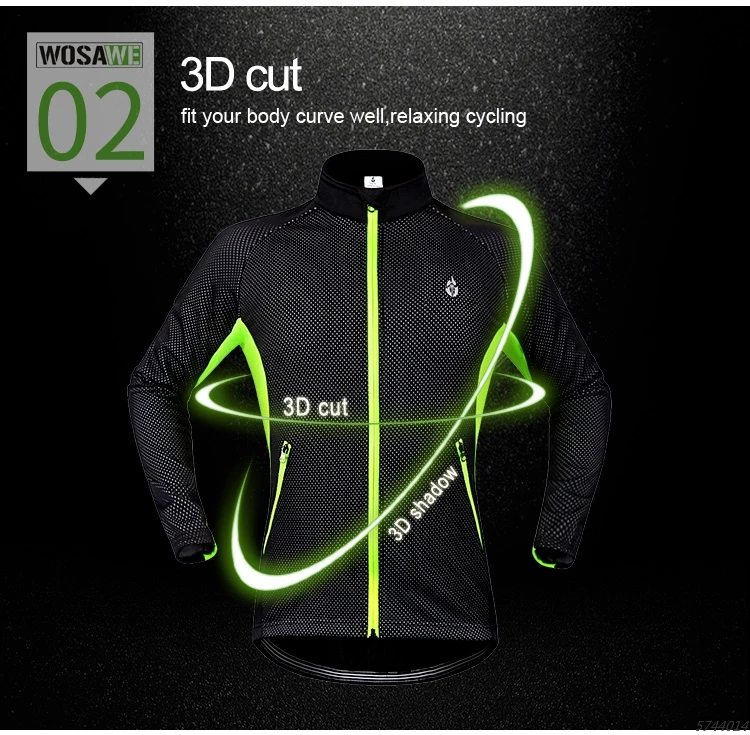 WOSAWE Men's Winter Warm Up Thermal Fleece Cycling Jacket Bicycle MTB Road Bike Clothing Windproof Water Repellent Long jacket