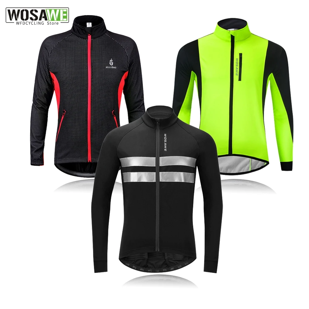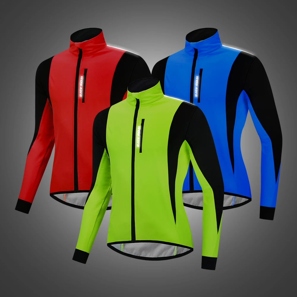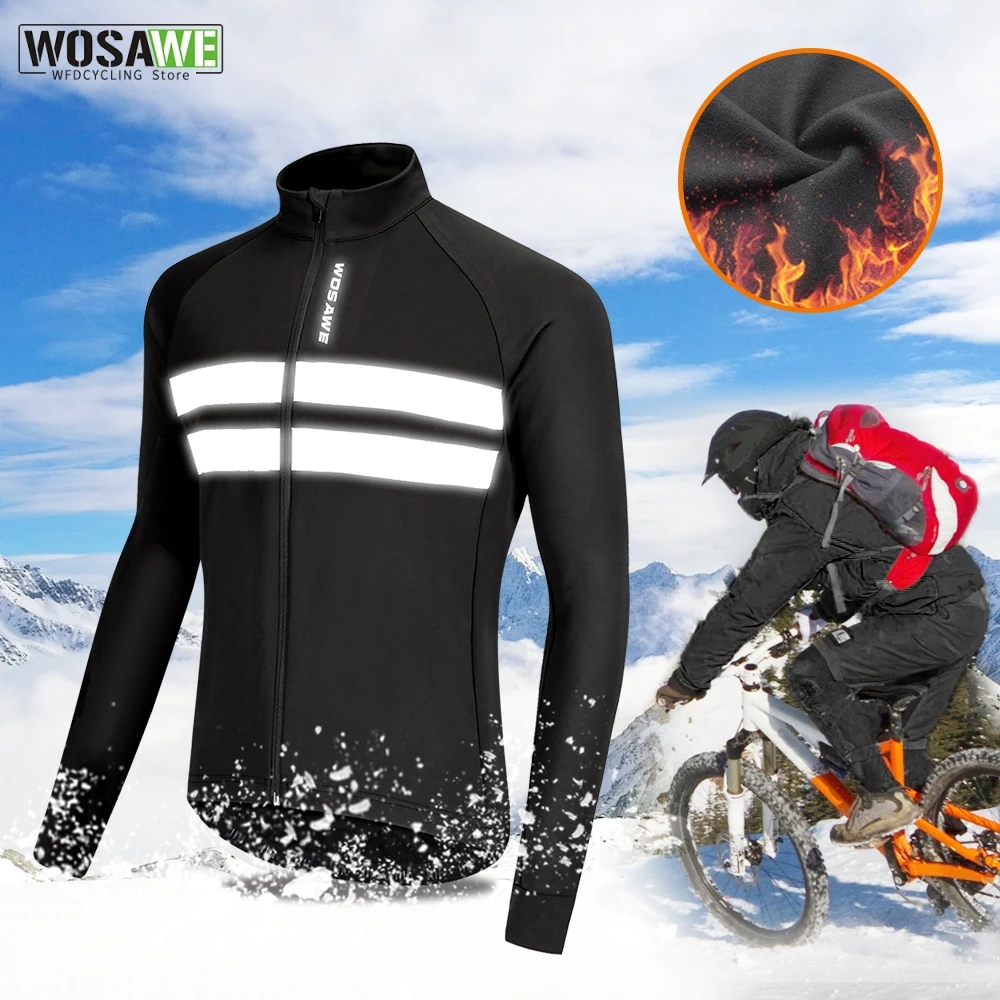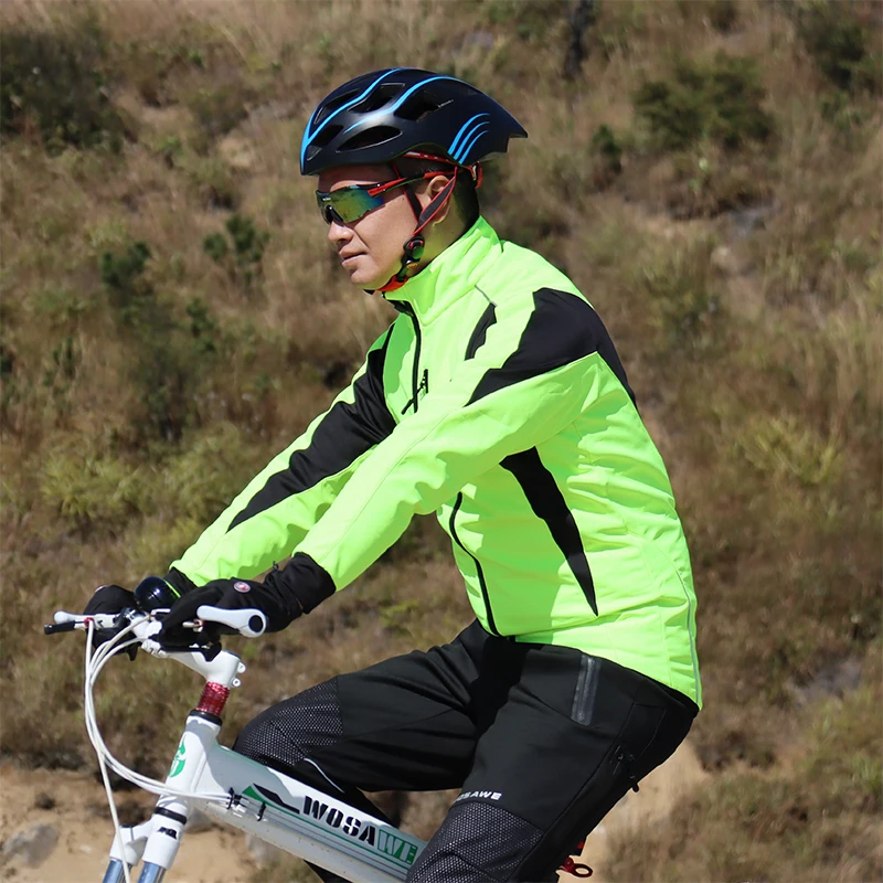 WOSAWE Men's Winter Warm Up Thermal Fleece Cycling Jacket Bicycle MTB Road Bike Clothing Windproof Water Repellent Long jacket