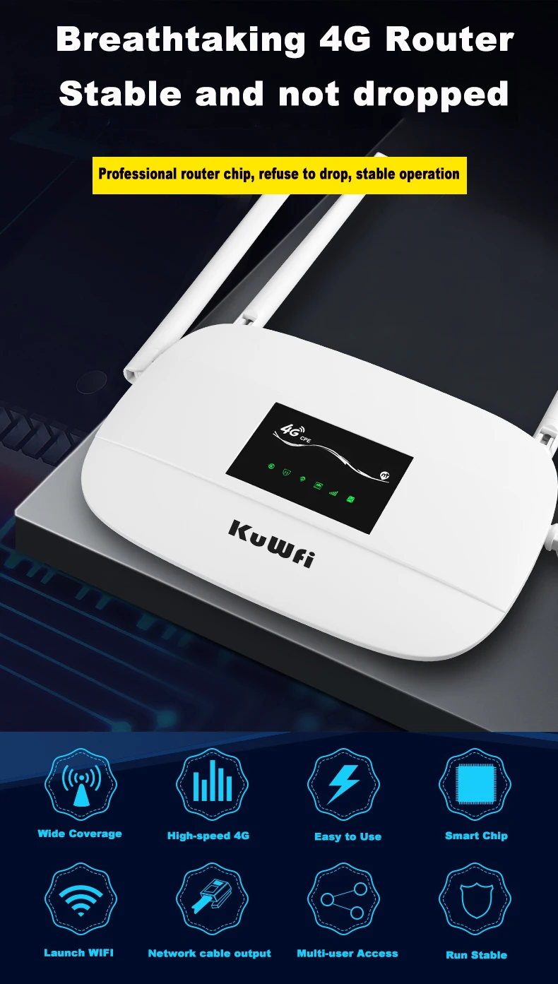 4G WiFi router provides a wireless transmission speed up to 300Mbps.Produce a 2.4GHz WFi hotspot with a powerful 3,000 square meter WiFi coverage.