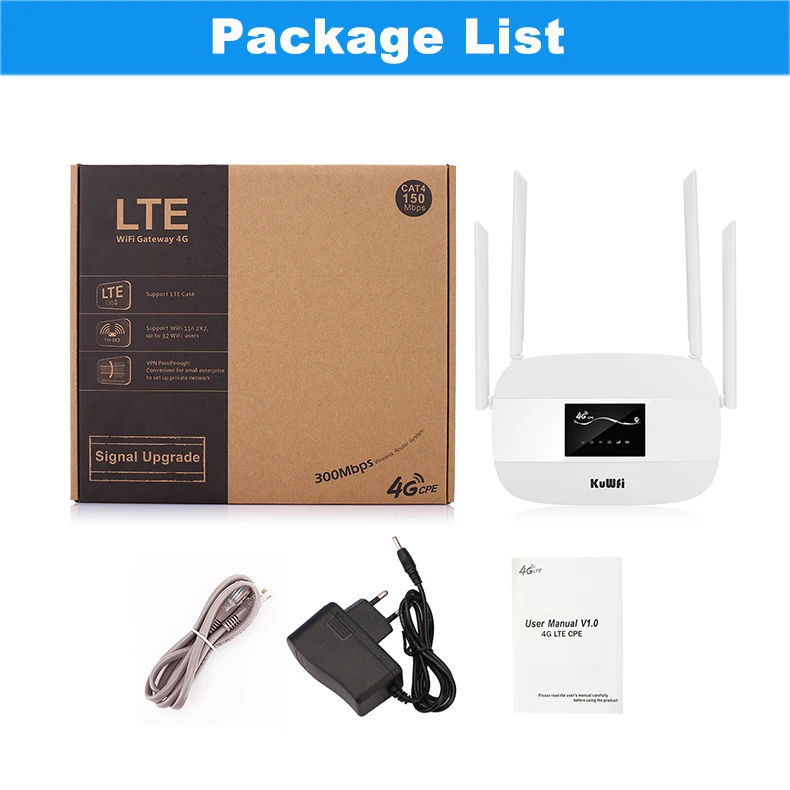Internet connection sharing reaches to 32 WiFi users,Internal dual-antenna, selectable 4G / 3G signal A stylish and slim design to fit in perfectly with your home.With LED indicator display, see the status easily.supports 2.4GHz WiFi, WiFi speed up to 300Mbps, effectively reduces the same frequency interference, improves the wireless transmission range, eliminates dead zones.